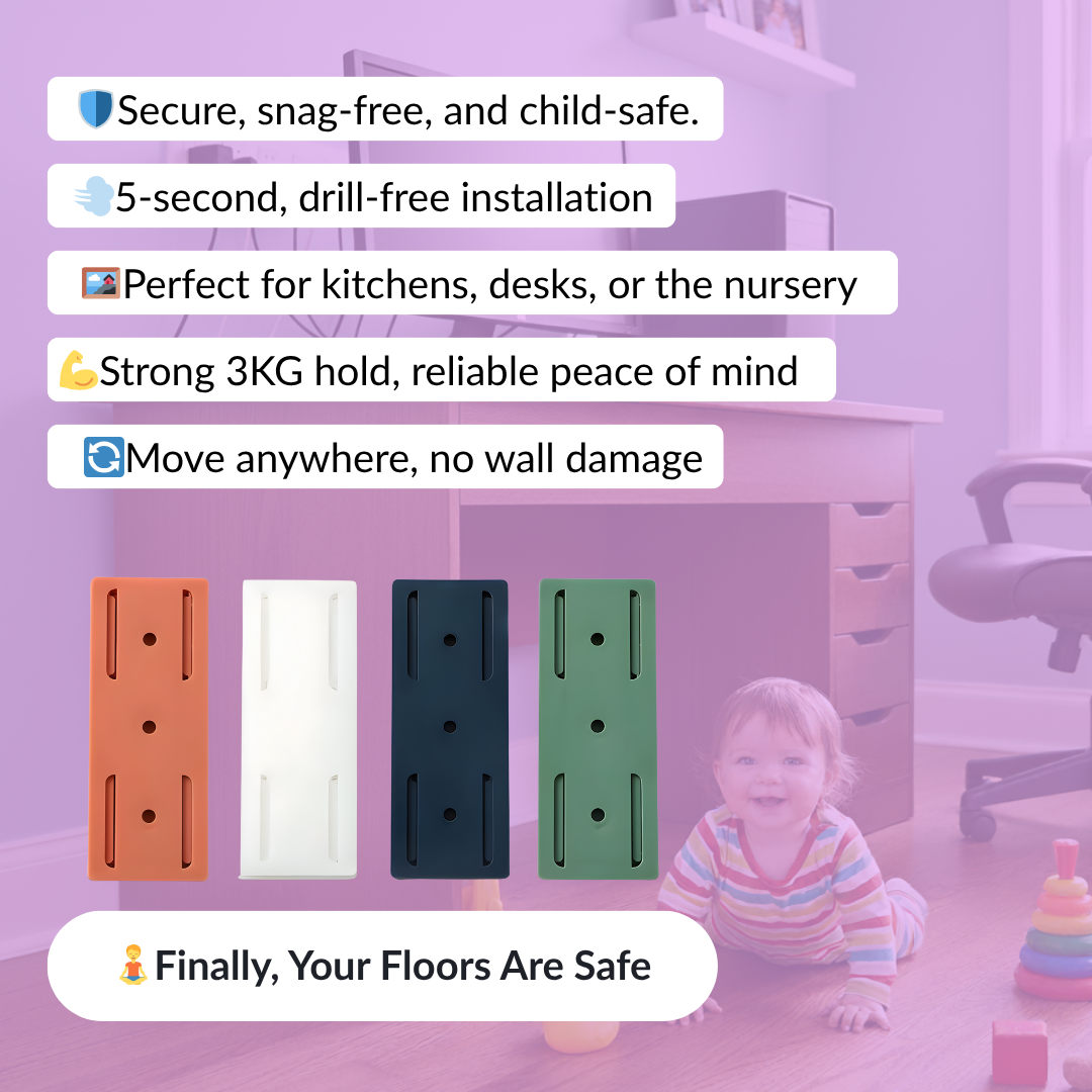 Uses a High-Traction Slide-and-Lock System that instantly clicks your power strip into a mounted base.