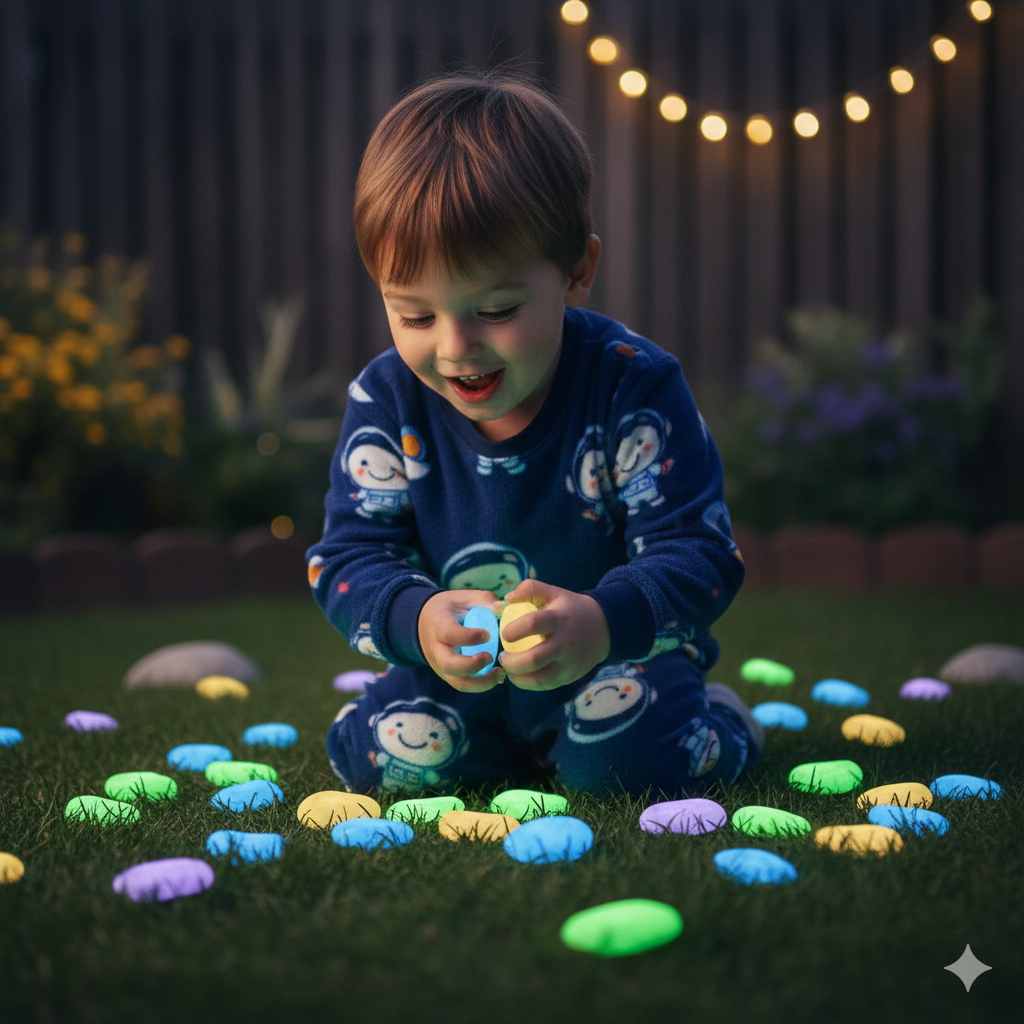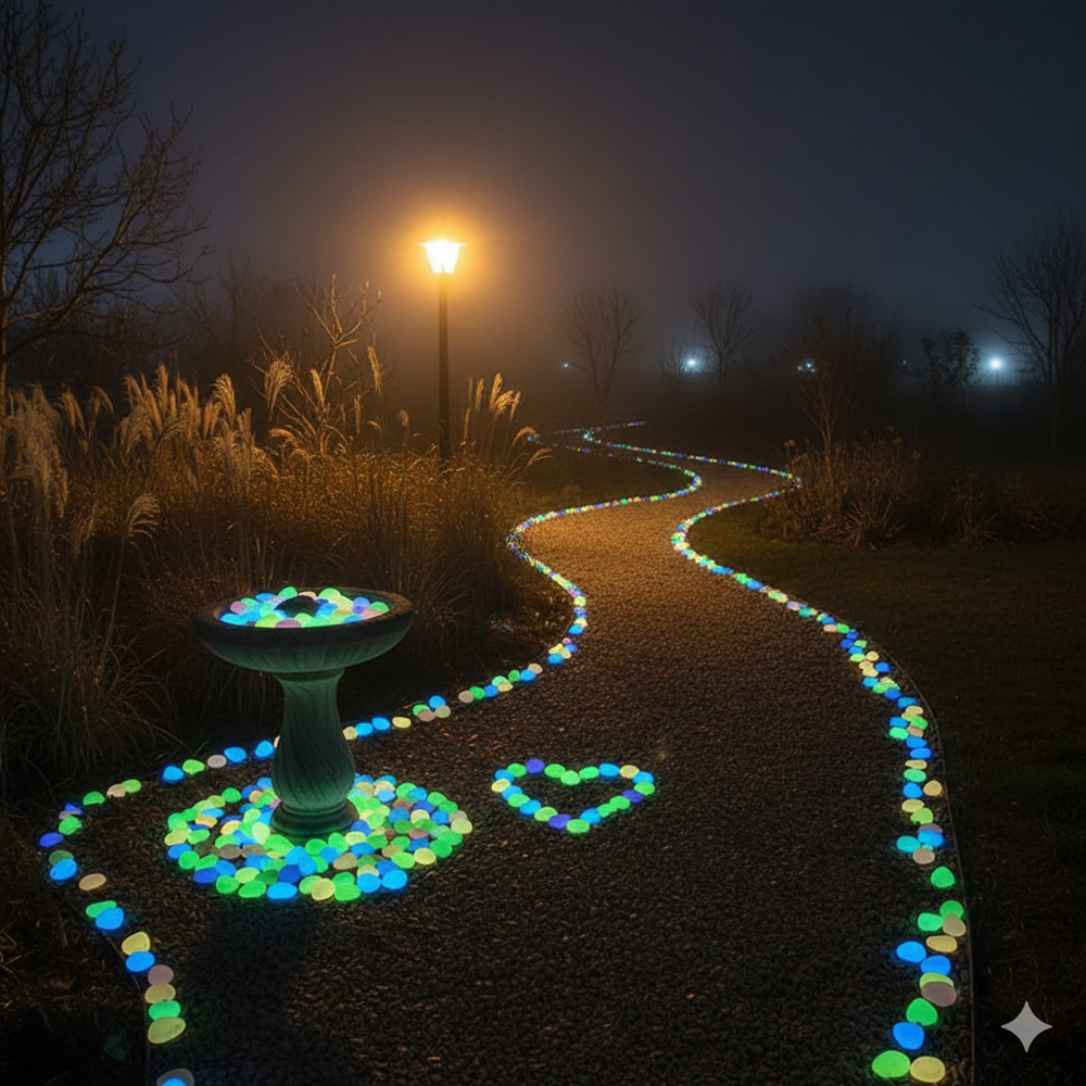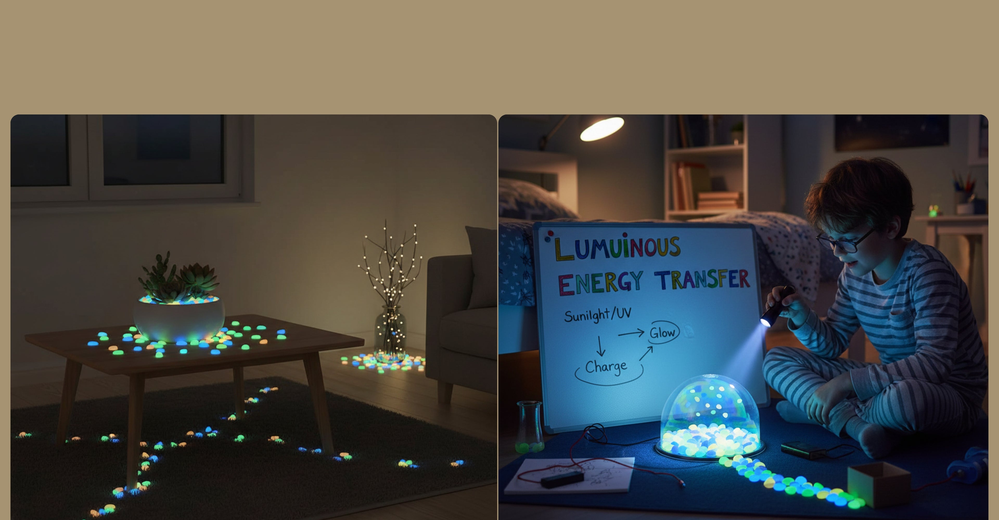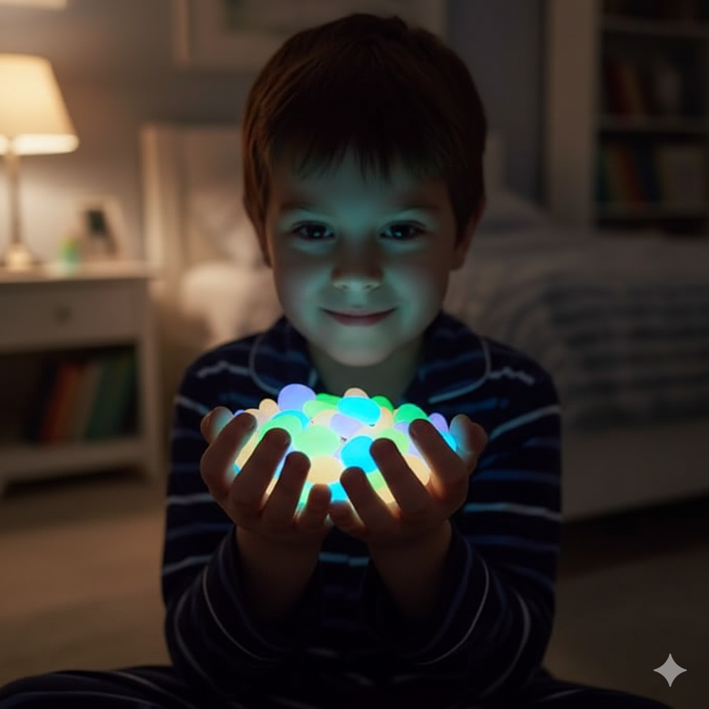 LumiPebble™ is designed to glow naturally without batteries, electricity, or chemical additives. The smooth, rounded stones are safe for kids to touch, play with, and use in creative projects — and completely harmless around pets, plants, and aquariums.