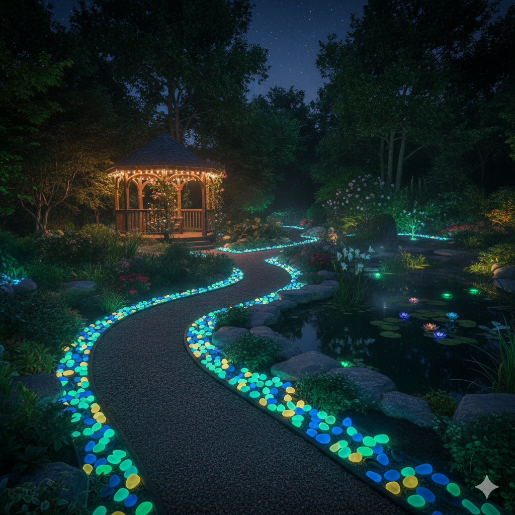 Just place LumiPebbles™ where you want a little magic. During the day, they absorb light. At night, they gently illuminate your garden, room, pathway, aquarium, or décor corner with a calming neon glow.