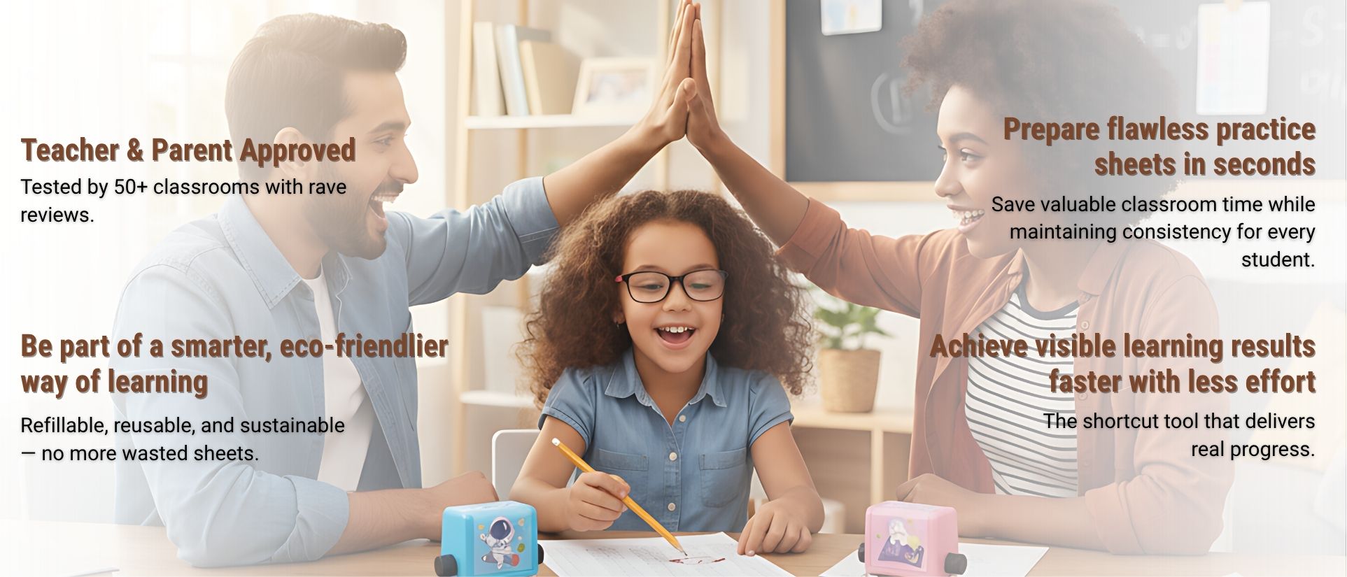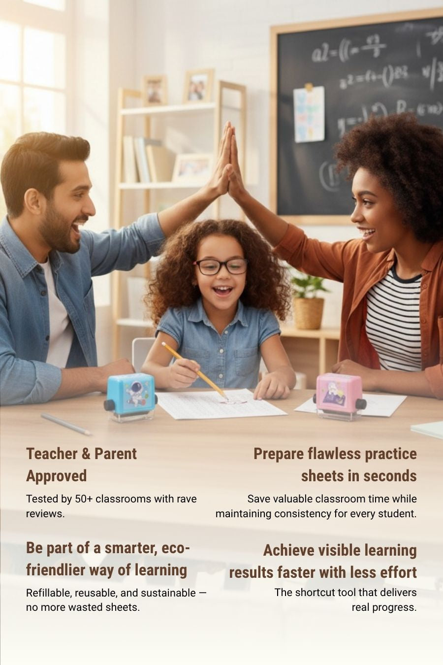 Absolutely! The stamp is durable, efficient, and perfect for classroom or tuition use. You can create dozens of question lines for different students in seconds — no photocopying, no prep stress.